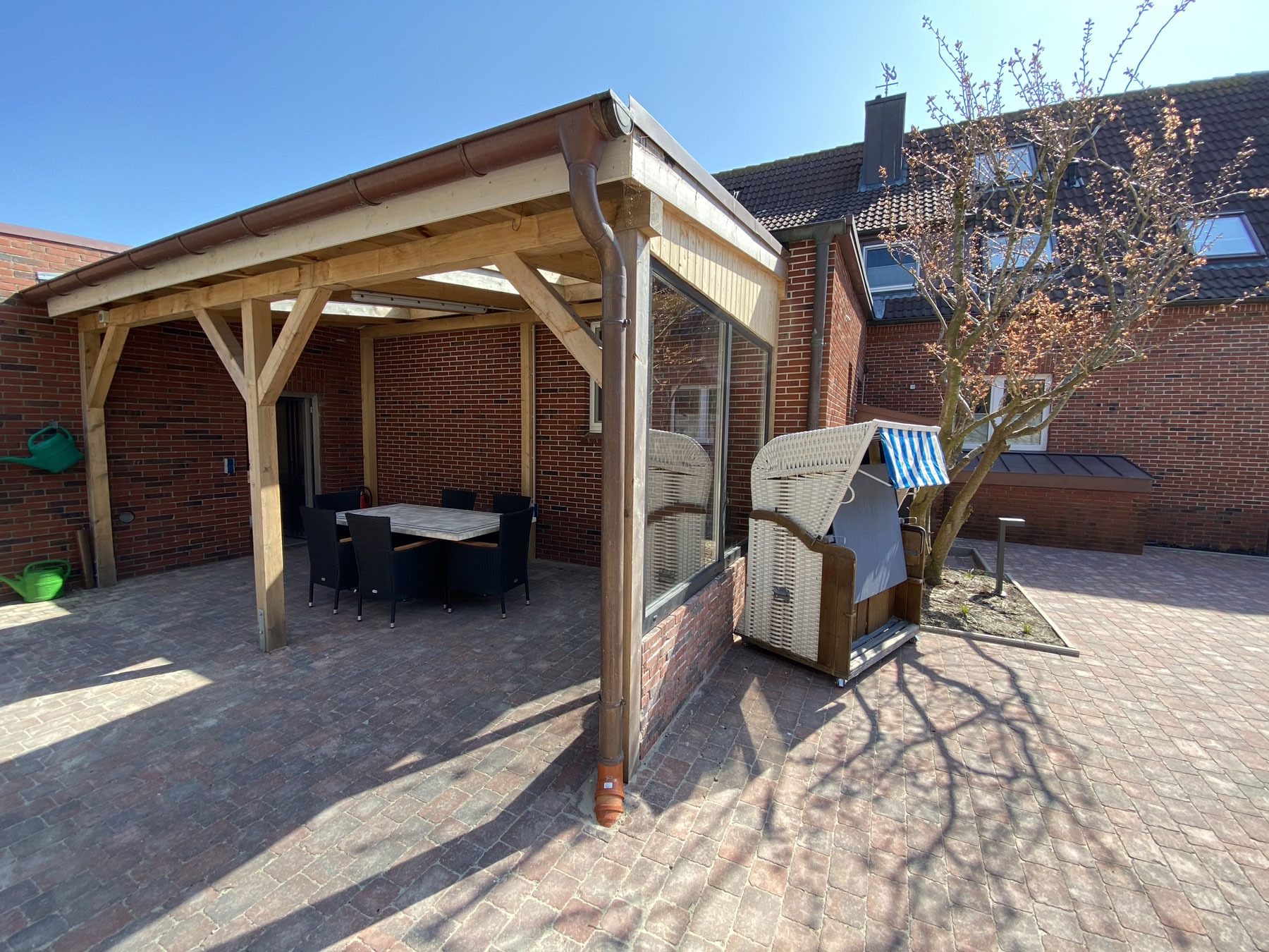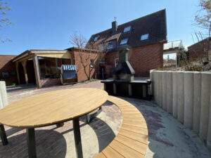 Die Gäste können hier (nach Absprache) den Innenhof mit dem dazugehörigen Grillplatz nutzen. Als weiteres befindet sich im Innenhof eine wind/wettergeschützte Pergola mit einem großen Esstisch.